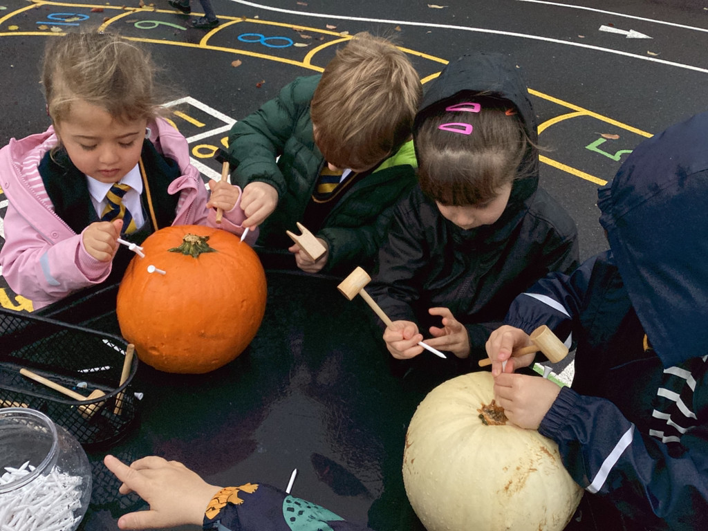 We have been loving Autumn! We have made Conker soap and we have been exploring Pumpkin smashing and strengthening our fingers by hammering into the pumpkin. We have also enjoyed printing with Autumn vegetables into the paint to create pictures. Happy half term everyone!