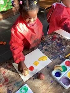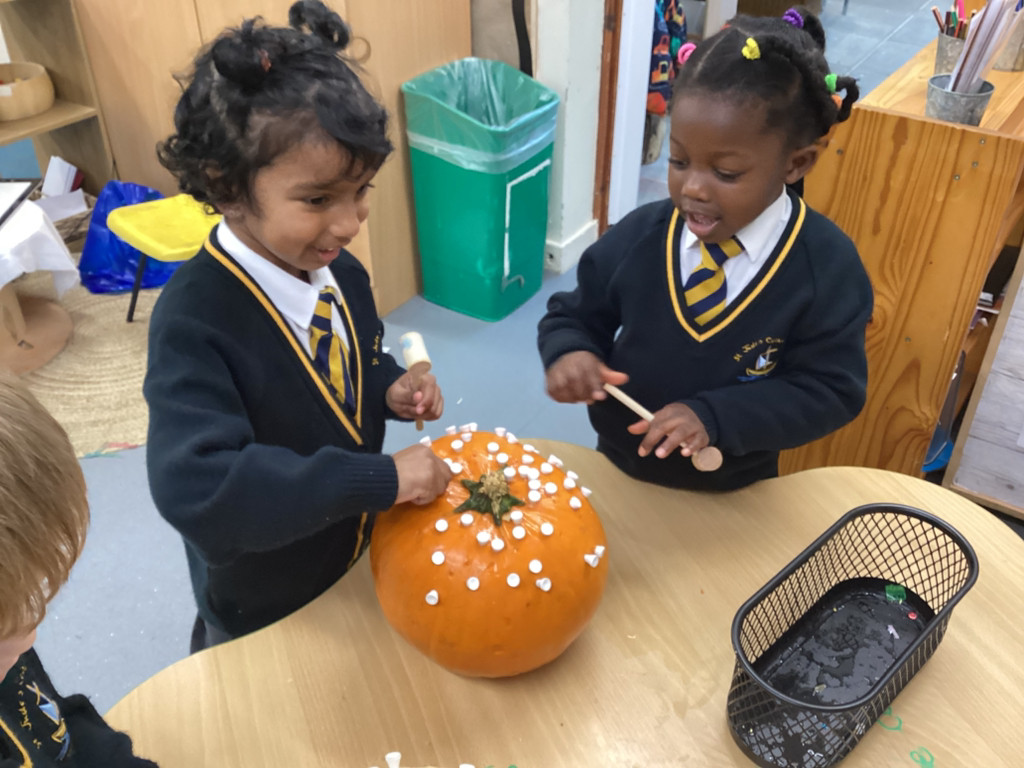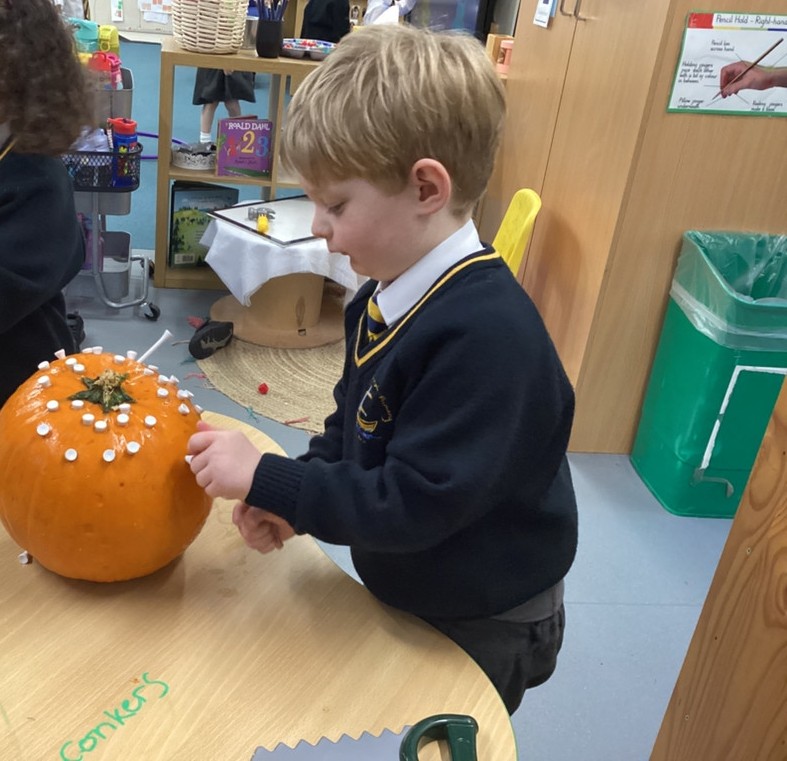 We have been loving Autumn! We have made Conker soap and we have been exploring Pumpkin smashing and strengthening our fingers by hammering into the pumpkin. We have also enjoyed printing with Autumn vegetables into the paint to create pictures. Happy half term everyone!