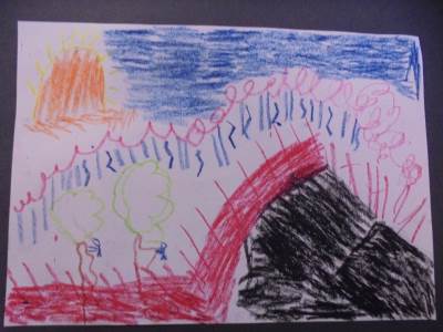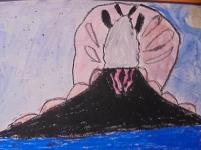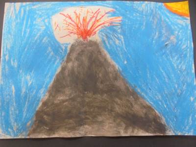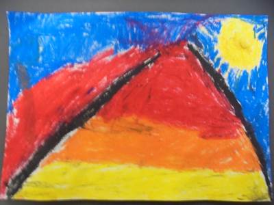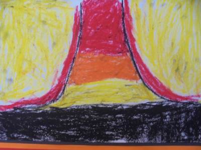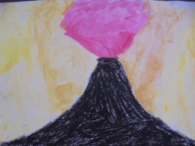 Margaret Godfrey created a series of paintings of Kilauea, a volcano in Hawaii. Here are our pieces inspired by her work.